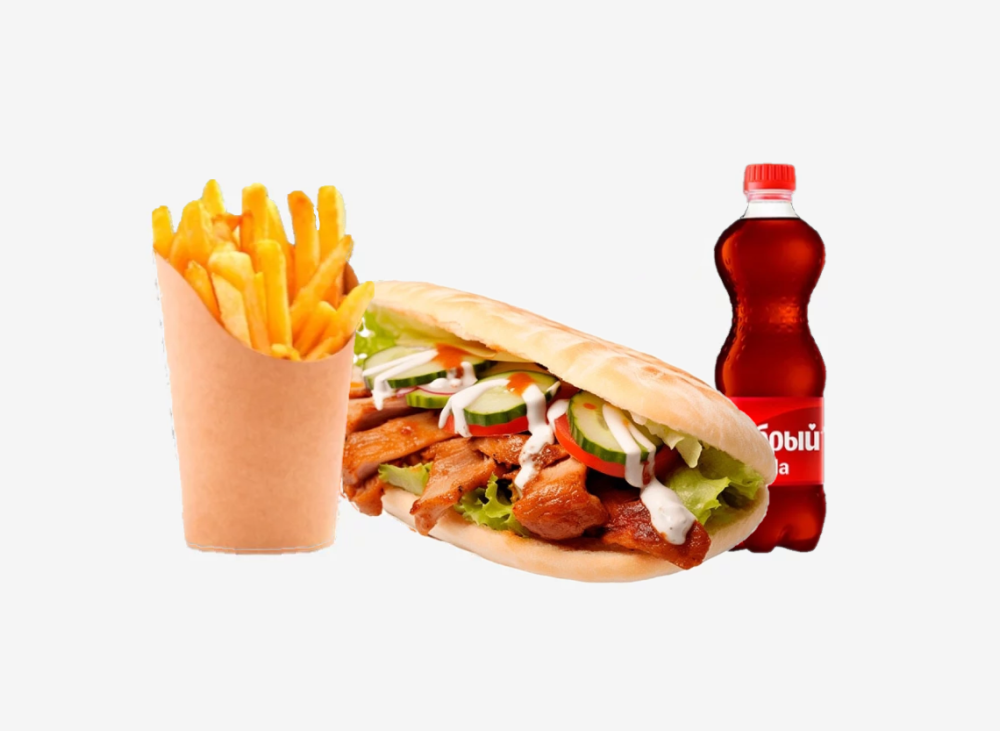 Донер Берлинский (1шт), картошка фри (80гр), добрый кола 0.5