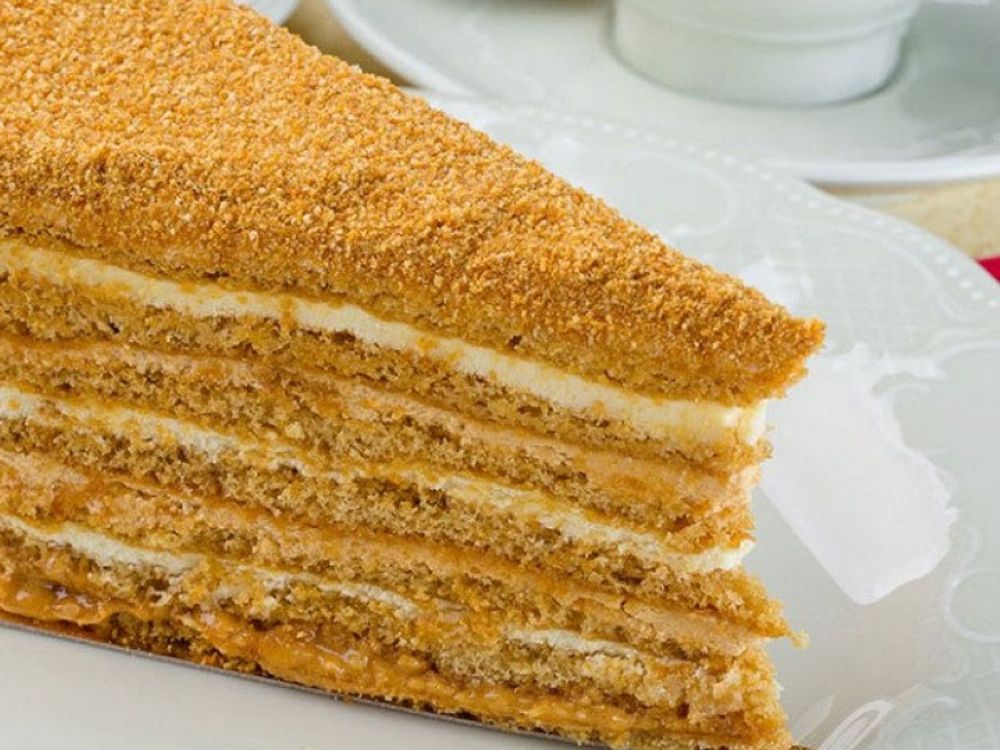 Нежный десерт с медовым ароматом. Сметанный крем придаёт мягкость и лёгкость. Вкус гармонично сочетает сладость мёда и нежность крема.