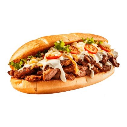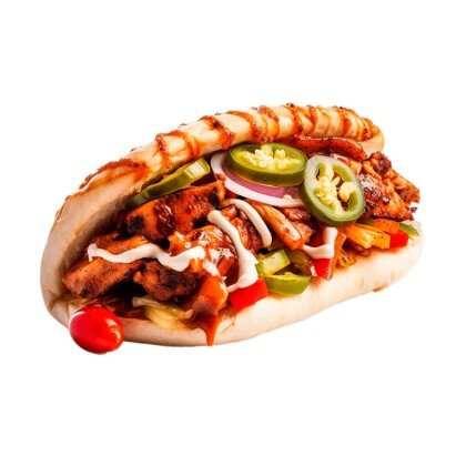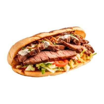 420гр. Чиабатта, мясо на выбор, свежайший томаты, шампиньоны терияки, огурчики, капустка, красный лук, фирменный чесночный соус.