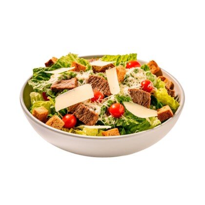 Фалафель, листья салата Айсберг, сыр пармезан, фирменный соус, сухарики, томаты черри